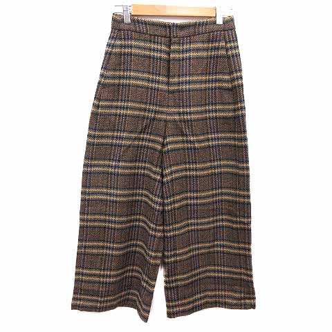 【中古】ドゥクラッセ DoCLASSE ワイドパンツ チェック 7 S 茶 ブラウン /YK レディース