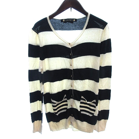 【中古】フランシュリッペ franche lippee ニット カーディガン ボーダー 長袖 M アイボリー 白 ホワイト レディース