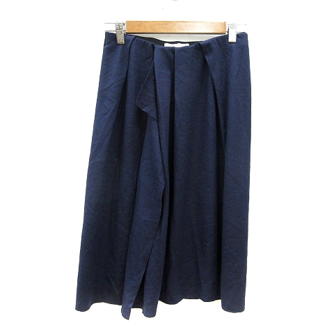 【中古】プレインピープル PLAIN PEOPLE フレアスカート ミモレ ロング ウール ペチコート付き 2 M 紺 ネイビー