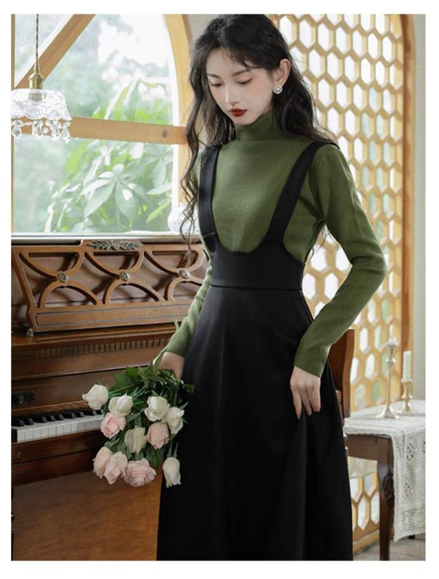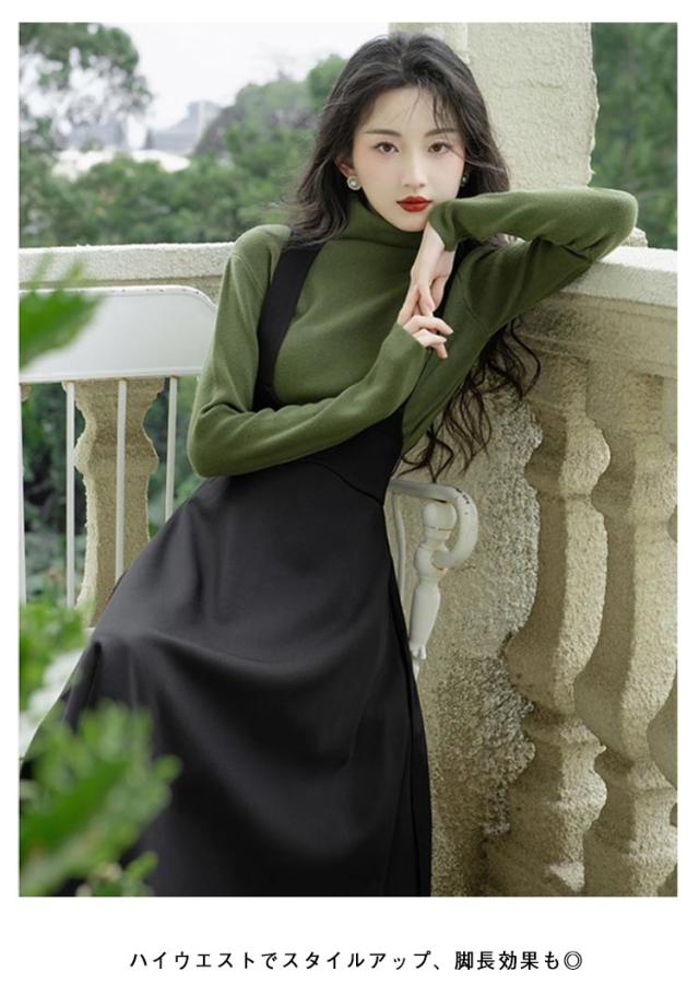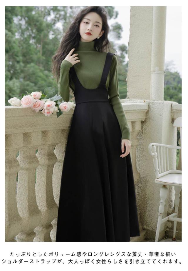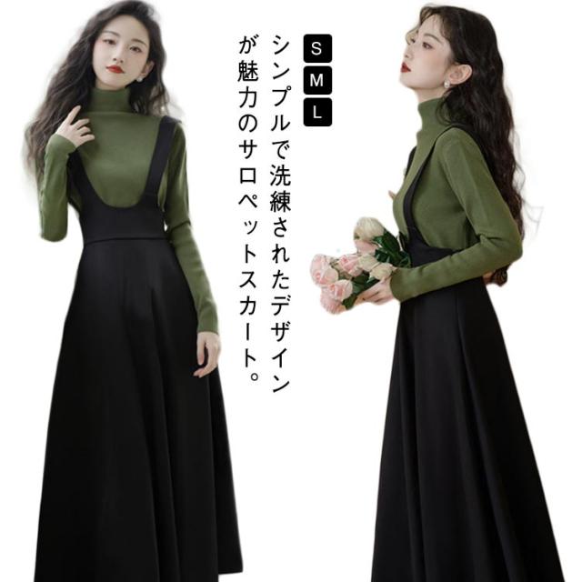 ジャンスカ ジャンパースカート サロペット スカート ワンピース レディース 30代 40代 50代 サロペットスカート Aライン ロング ハイウエスト aラインスカート 春夏 秋 サロペスカート オーバーオール レイヤード 重ね着 きれいめ 大人可愛い 体型カバー 黒 無地 【送無】