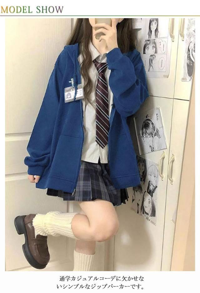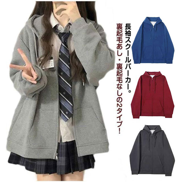 高校生 パーカー 中学生 スクール 制服 女子 学生服 学生パーカー レディース トップス 長袖 春 秋 秋服 春服 スクールパーカー 裏起毛あし・なし ゆったり カジュアル シンプル 通学 学生 ガールズ アウター ジップアップパーカー フード付きパーカー コート