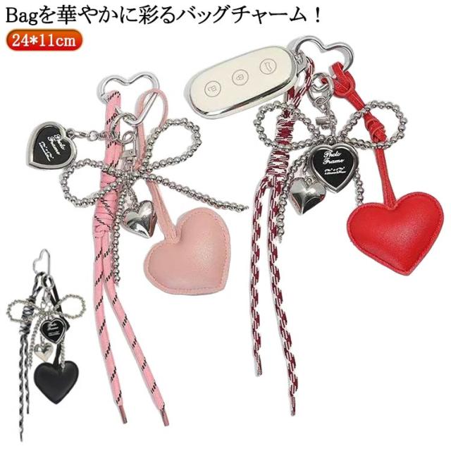 バッグチャーム ハート リボン チャーム キーホルダー チャーム かわいい バッグチャーム ストラップ モチーフ キーホルダー パラコード ストラップ パラコードストラップ レディース キーチャーム プレゼント 人気 かわいい 紐 送料無料