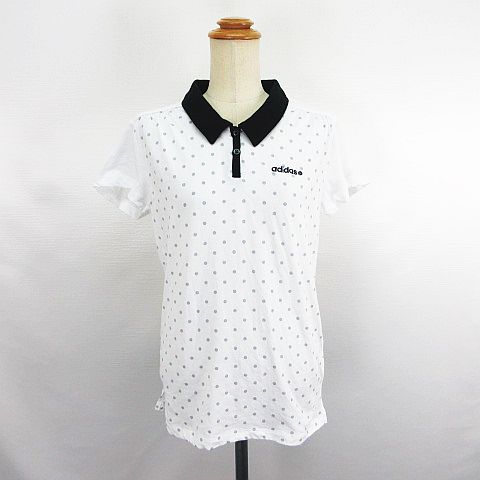 【中古】アディダスネオ adidas neo ポロシャツ 半袖 ギャザー ドット ロゴ コットン L ホワイト ※EKM レディース
