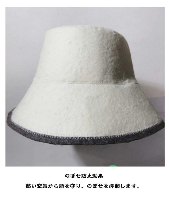 | サ活での必需品! サウナハット。 サウナ初心者の方も、ベテランの方もどうぞ! 男性 女性 兼用フリーサイズです。 頭と頭皮、髪を保護 断熱性の高い羊毛の使用で、熱気から頭・髪を保護。 頭皮の負担も軽減し、抜け毛抑制にも。 のぼせ防止効果 熱い空気から頭を守り、のぼせを抑制します。 シンプルデザインでいつも使える ロゴなどが無く、男女共にオシャレにご使用いただけます。 肌触りOK、お手入れOK 天然ウールフェルトですが、チクチクせず肌触りGOOD。 お手入れも、手洗いで水を絞って干すだけで簡単。 | |