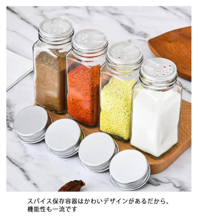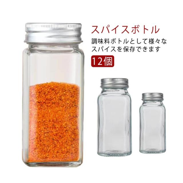 | 12個 スパイスボトル 調味料ボトルとして様々なスパイスを保存できます スパイスボトルは多段階調味料穴が付き 振りかける口が大から小まで、使いたい分量を選んで出すことができます スパイス保存容器はかわいデザインがあるだから、機能性も一流です | |