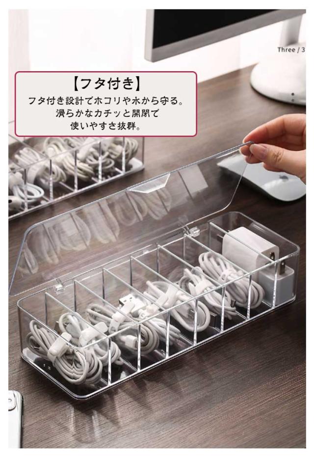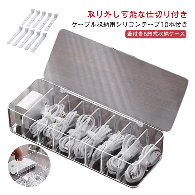 ケーブル 防塵 仕切り付き コンタクト収納ケース カラコン 透明 小物 収納 ケース 8列 コンタクト 取り外し可能 ケーブル収納 ボックス 収納ケース 多機能 大容量 【シリコンテープ10本付き】 防水 ジュエリー 化粧品 アクセサリー 小物整理 アクリル