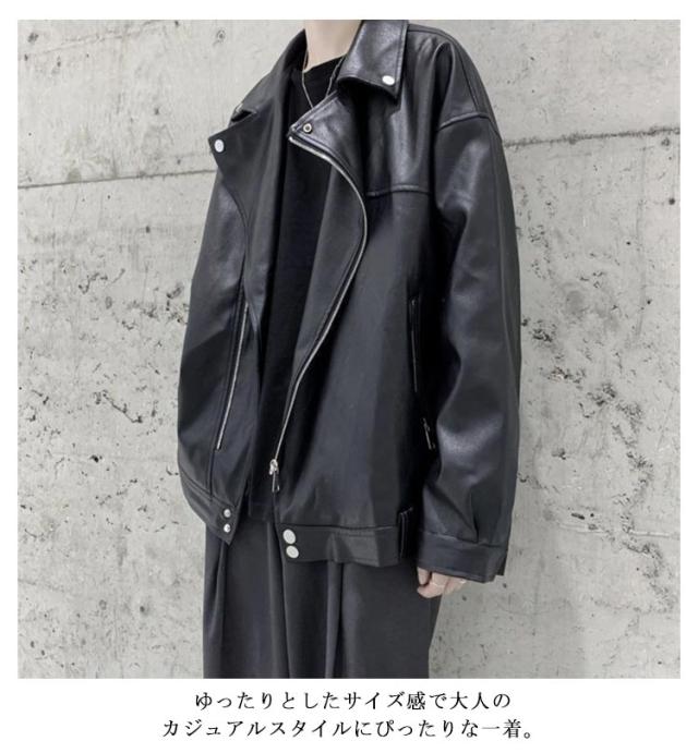 ストリート フェイクレザー メンズ 長袖 オーバーサイズ 合皮 ショート丈 ジャンパー ジャケット 革ジャン ゆったり アウター 革ジャン ライダースジャケット コート ビッグシルエット 合皮 レザージャケット カジュアル ジャンパー 春 秋 冬