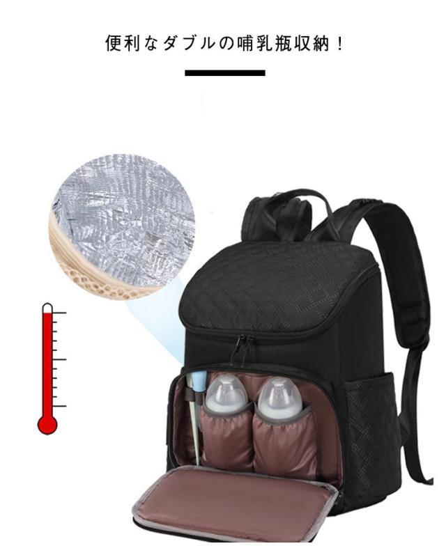 | おしゃれなマザーズバッグ!トレンドをおさえた使いやすいシンプルデザイン!お子様連れのお出かけにはマストアイテムです! 大容量の内側スペース、たっぷり入ってお子さま連れのお出かけも楽々。 荷物が多くなる子育て中でも、余裕を持って荷造りができます。 前面アルミシート付きの独立ポケットで、高い保温効果が期待できます。 便利なダブルの哺乳瓶収納! 機能的な防水加工! 内側防水加工の仕切りポケット! 便利なおむつ替えシート付! 7.5cm広幅ベルトでストレス軽減! | |