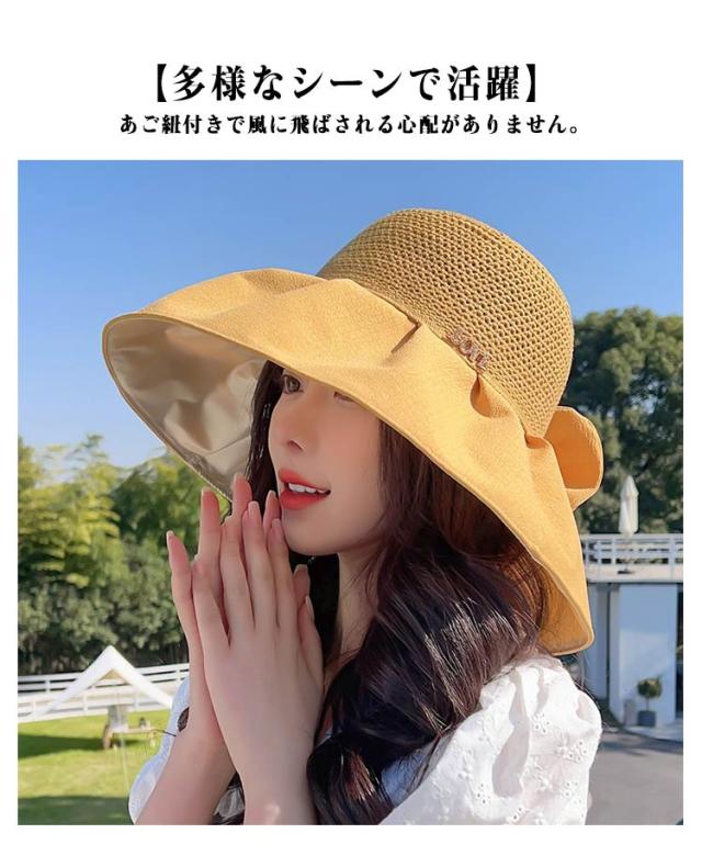 麦わら帽子 日除け帽子 UVカット レディース リボンたれ付き 紫外線対策 つば広ハット UVカット帽子 メッシュ つば広 あご紐 帽子 日よけ帽子 ストローハット 夏 通気 シェードハット ひんやり サファリハット 被る日傘 日よけ帽子 小顔効果 つば広 大きめ