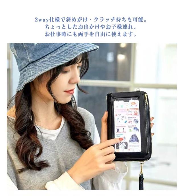 スマホショルダー 軽量 レディース お財布バッグ スマホポーチ 財布ポシェット ショルダーバッグ お財布ショルダー お財布ショルダー 斜めがけ 携帯ポーチ 小さめ ミニバッグ 携帯ポシェット 入れたまま操作可能 縦 軽量 透明 iPhone