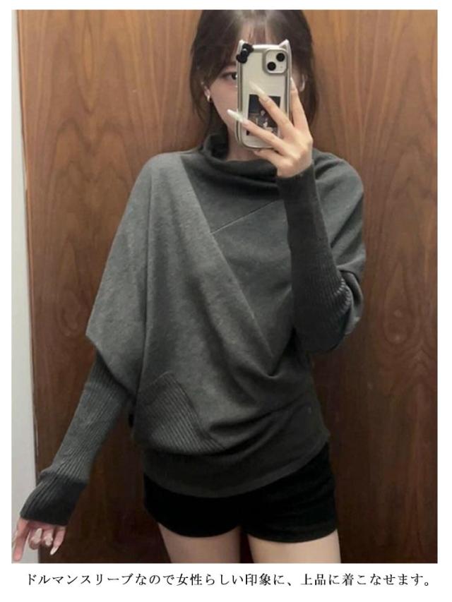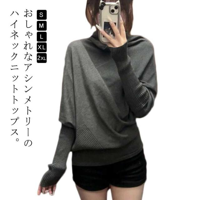 長袖 アシンメトリー セーター M ハイネック レディース ニットトップス カジュアル アメカジ フェミニン アシンメトリー S ニットセーター L XL 2XL
