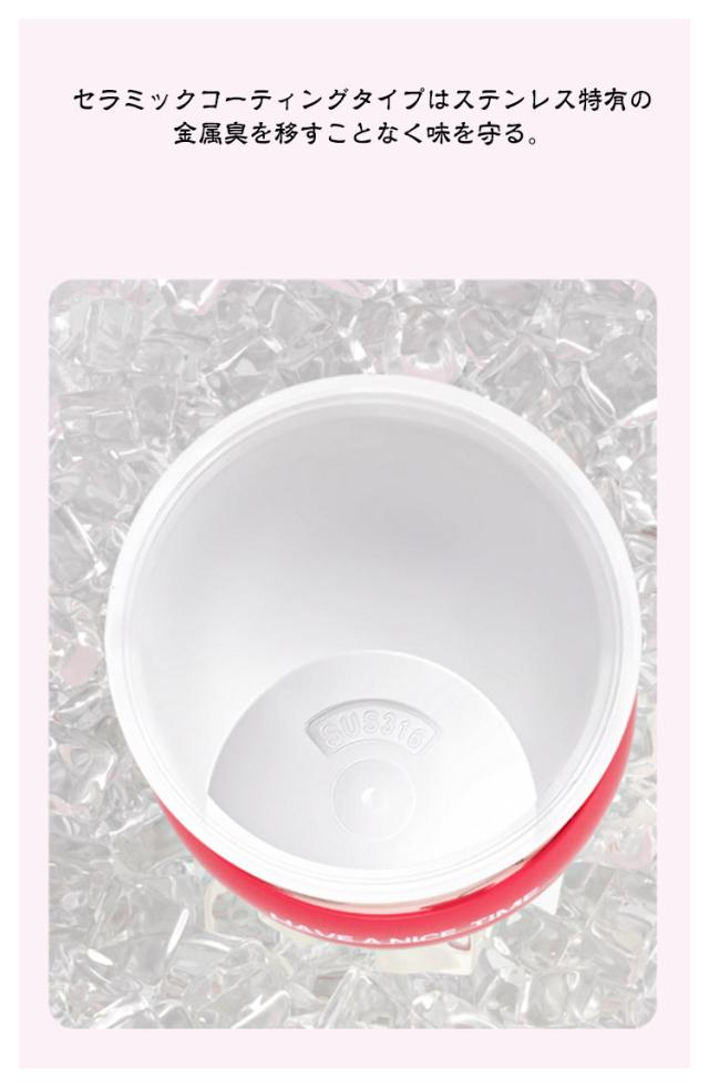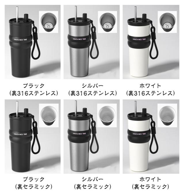 | 素材 | SUS316ステンレス、セラミックコーティング、ボトル蓋/ストローキャップ:PPストロー:ステンレス/シリコンチューブ |