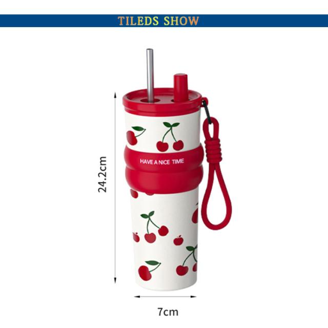 ステンレス 蓋付き 茶こし こぼれない 保温 タンブラー 牛乳 おしゃれ 大容量 タンブラー 持ち運び 710ml ストロー付き 直飲み 保冷 真空 断熱 マグボトル セラミック 316ステンレス コーヒー 豆乳 炭酸 ストロー付き水筒 伸縮ストロー 滑り止め