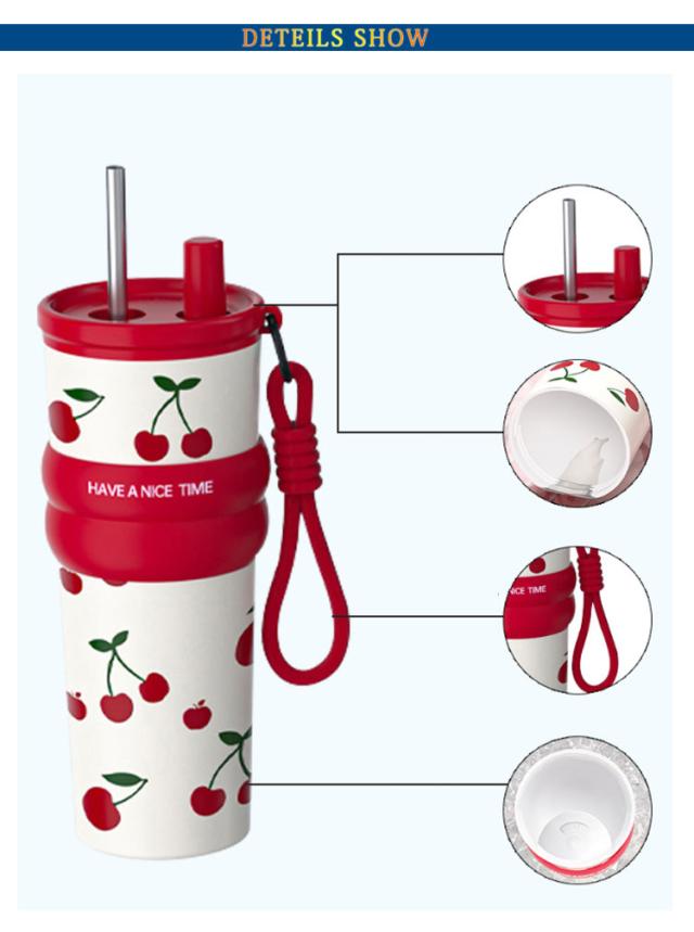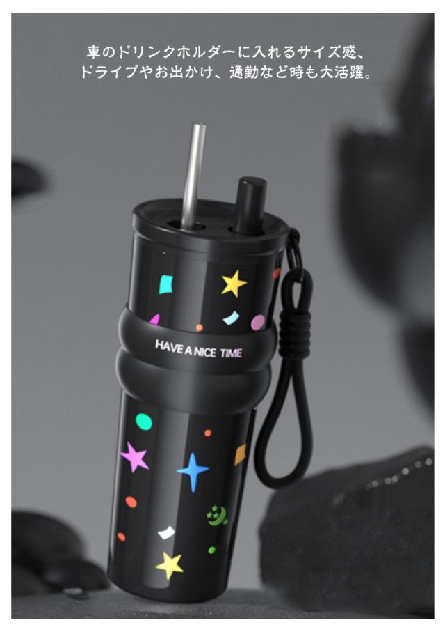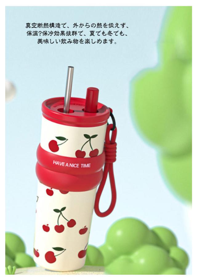 | 伸縮ストロー&ストラップ付きタンブラー。 裏316ステンレス/裏セラミックコーティング 710ml セラミックコーティングタイプはステンレス特有の金属臭を移すことなく味を守る。 真空断熱構造で、外からの熱を伝えず、保温?保冷効果抜群で、夏でも冬でも、美味しい飲み物を楽しめます。 伸縮できるストロー、ストローキャップを閉めると、タンブラーを逆さまや横置きにしても漏れないから、かばんの中に入れて持ち運びのに便利で安心◎ストローもいちいち取り出す必要なく、便利で衛生的。 ストロー付きタンブラーは目線を下げずに飲み物をのむことができるので、オフィスシーンやデスクワークに最適です。容量はお好きなドリンクをたっぷり楽しめる710mlです。 ストローを使う時はキャップを収納口に回すと締まるから、キャップの紛失防止に。 車のドリンクホルダーに入れるサイズ感、ドライブやお出かけ、通勤など時も大活躍。 持ちやすい滑り止めリングカバーと持ち運び便利な手提げストラップ付属するのも嬉しいポイントです。 茶こし玉もプレゼントいたします。美味しい花茶な紅茶も楽しめます。 | |