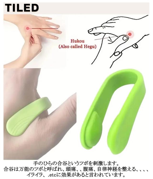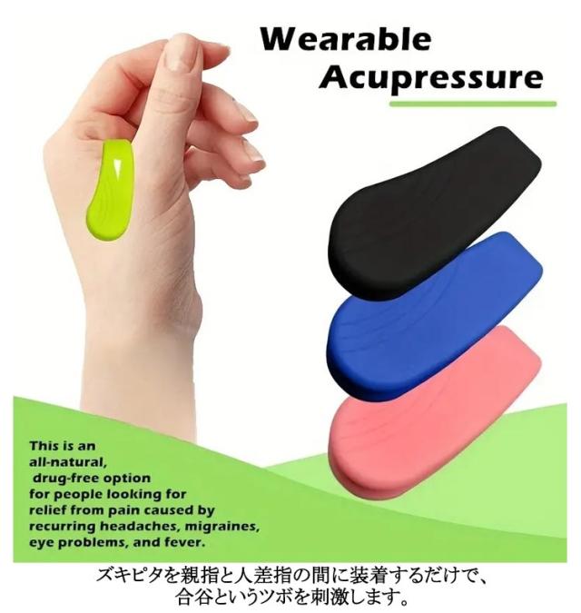 | 挟むだけで万能のツボ「合谷」押し! 【6個セット】 手のひらの合谷というツボを刺激します。 合谷は万能のツボと呼ばれ、頭痛、、腹痛、自律神経を整える、、、、イライラ、 .etcに効果があると言われています。 長時間のPC作業やスマホ使用に。 ズキピタを親指と人差指の間に装着するだけで、 合谷というツボを刺激します。 【手放しでツボ押しできる】クリップ形状で付けるだけでツボを押し続けることができます。お仕事中、お買い物中、お掃除中など家事をしながらでもお使いいただけます。 | |