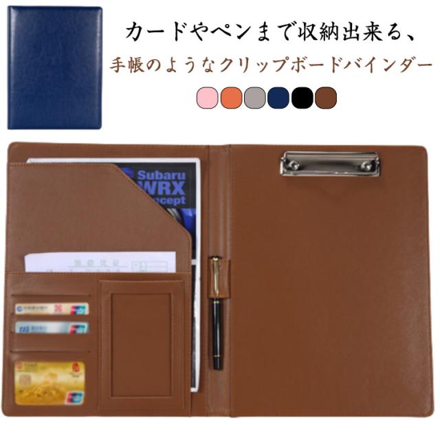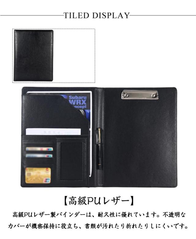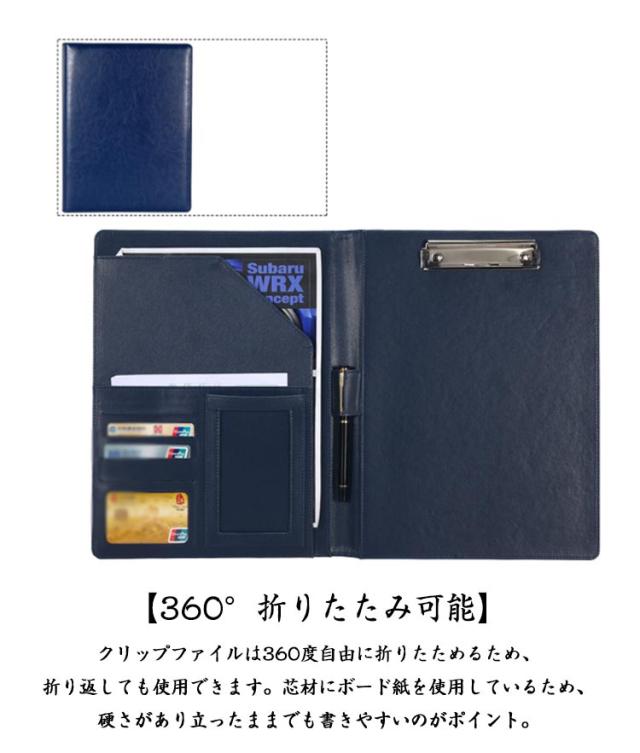 名刺入れ A4サイズ バインダー 2つ折り クリップファイル クリップ PUレザー クリップボード 多機能 ポケット付き バインダー ペンホルダー オフィス用品 スマートバインダー ビジネス 業務用 プレゼント 事務用品