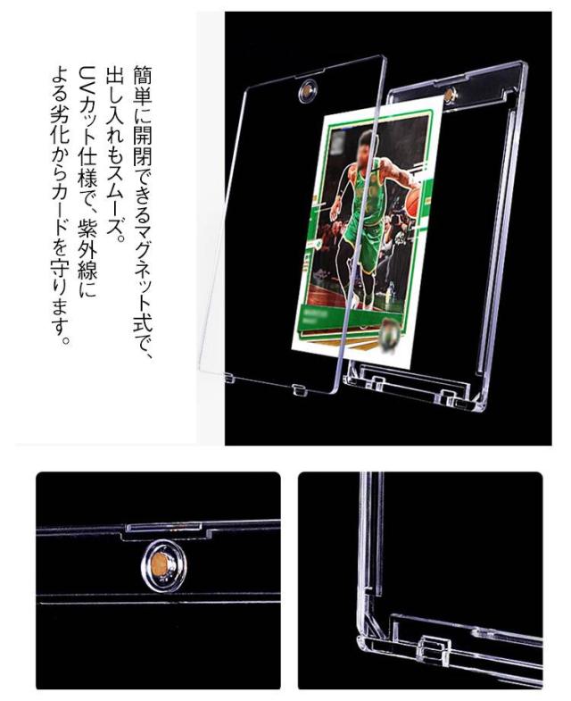 | 【35pt対応 マグネットローダー 10枚セット UVカット仕様で色あせ防止】 大切なカードをしっかり保護!マグネットローダー ポケモンカード・遊戯王・MTGなど大切なトレーディングカードを安全に収納できる 35pt対応マグネットローダー。 簡単に開閉できるマグネット式で、出し入れもスムーズ。UVカット仕様で、紫外線による劣化からカードを守ります。 高品質&安心の保護性能 ・35ptサイズ対応(一般的なトレカに最適) ・UVカット仕様で色あせ防止 ・防湿・防塵で長期保管も安心 ・透明度の高い素材でコレクションに最適 幅広い対応カード ・ポケモンカード(ポケカ) ・遊戯王カード ・デュエルマスターズ ・MTG(マジック・ザ・ギャザリング) ・スポーツカード など コレクション・収納に最適 ・コレクションを美しく保管 ・ディスプレイや観賞用にもおすすめ ・大切なカードのプレゼント包装にも活用可能 | |