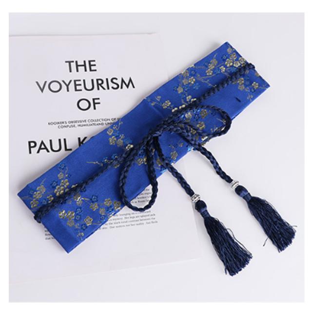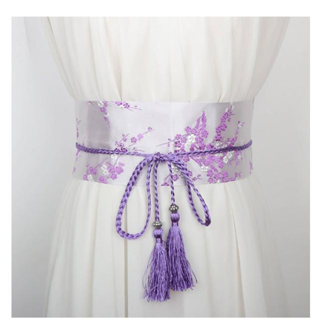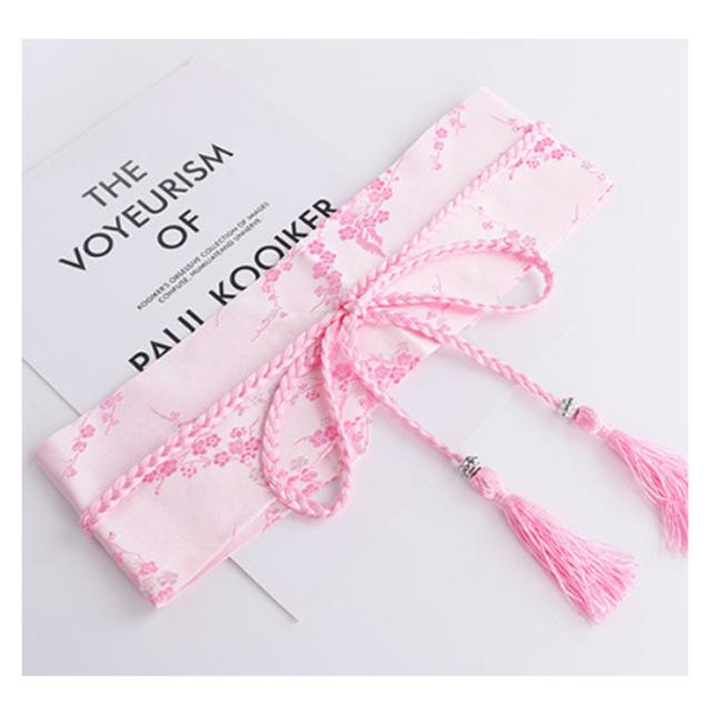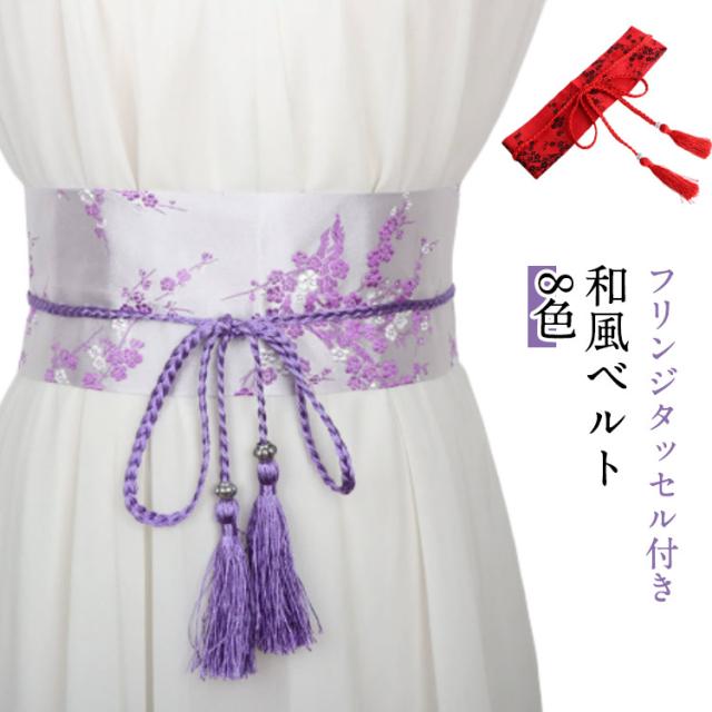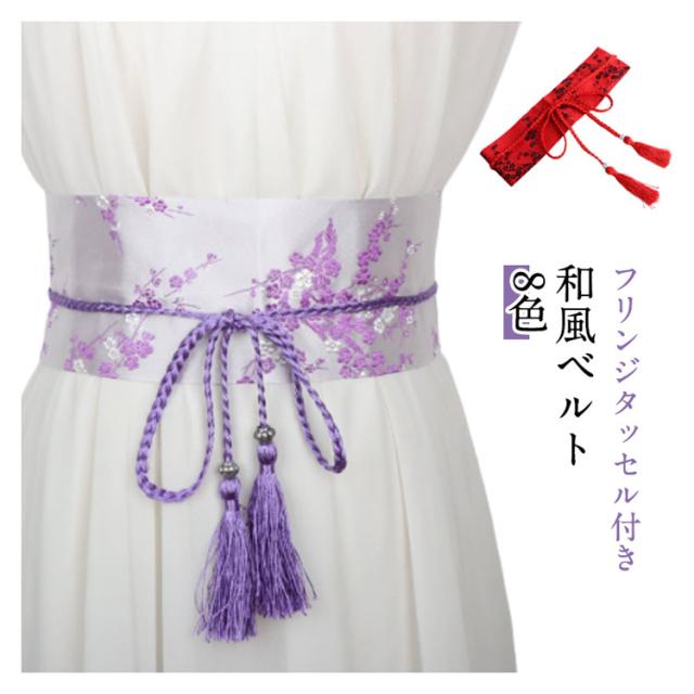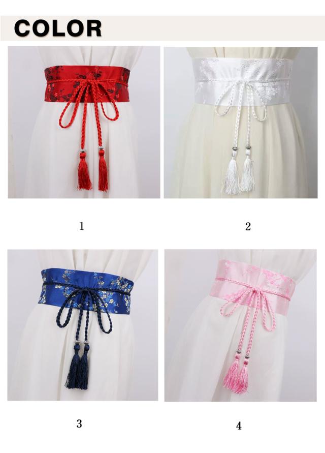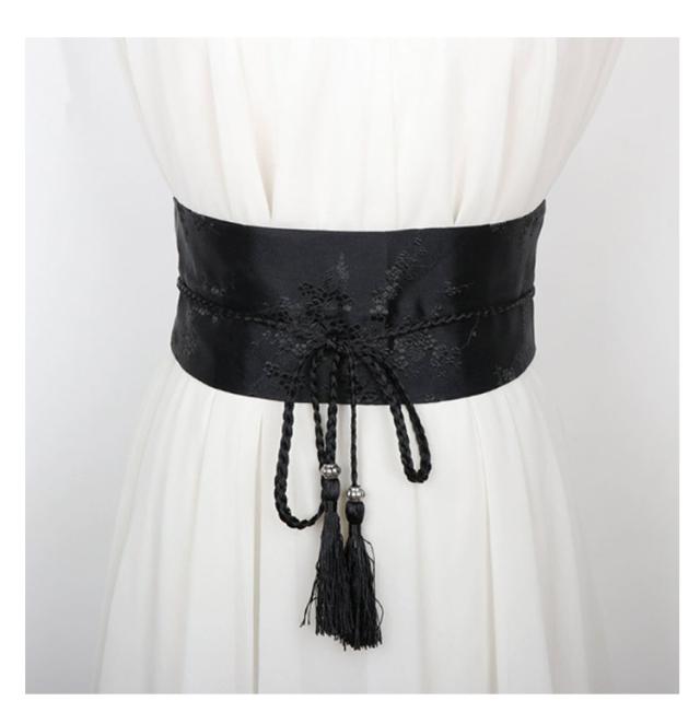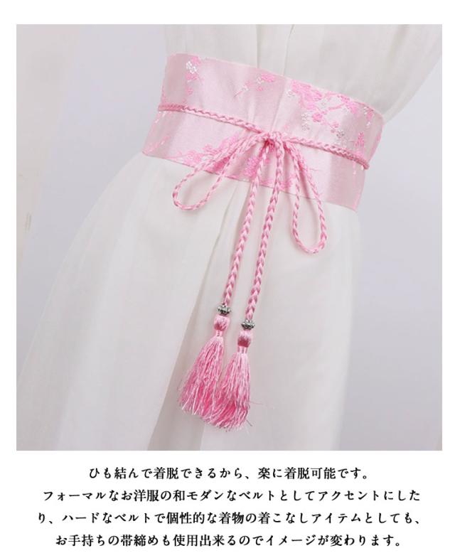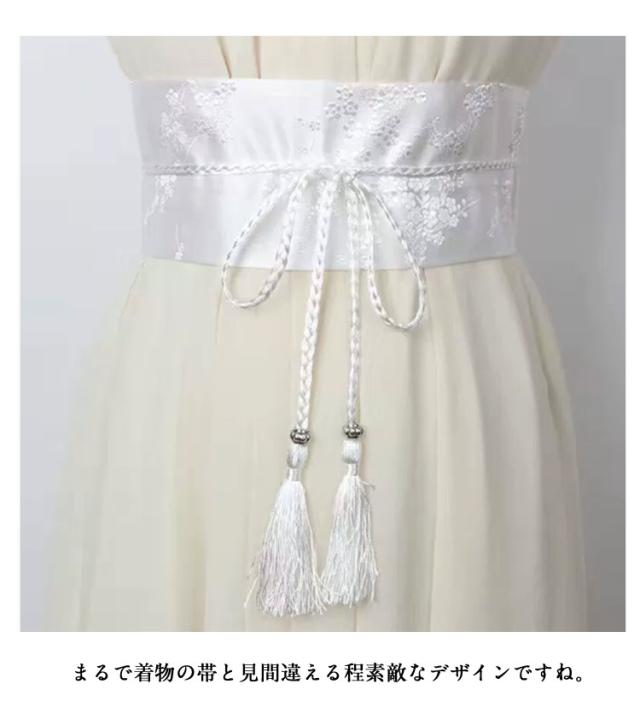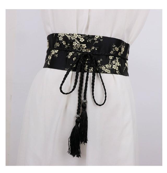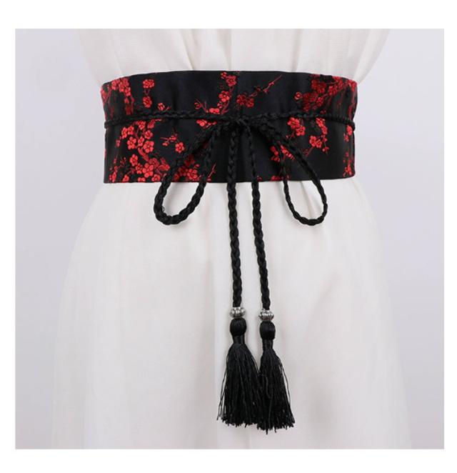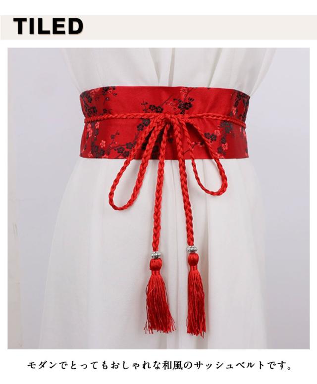 フリンジタッセル付き 幅広 アクセント 花柄 刺繍 サッシュベルト コルセット ハイウエスト 太ベルト 着物 帯 ウエストマーク フリンジタッセル付き 学園祭 文化祭 ベルト
