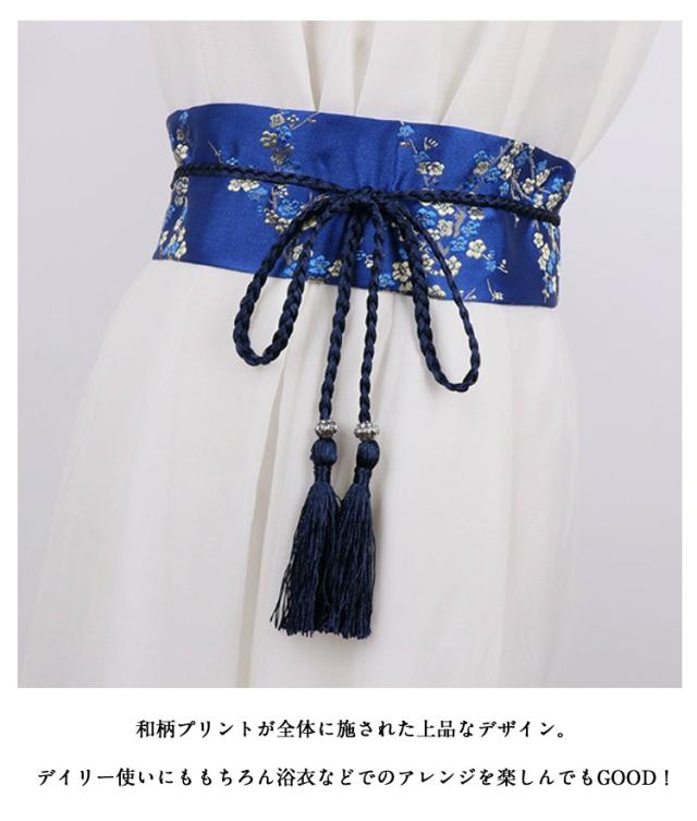 | モダンでとってもおしゃれな和風のサッシュベルトです。 まるで着物の帯と見間違える程素敵なデザインですね。 和柄プリントが全体に施された上品なデザイン。 デイリー使いにももちろん浴衣などでのアレンジを楽しんでもGOOD! ひも結んで着脱できるから、楽に着脱可能です。 フォーマルなお洋服の和モダンなベルトとしてアクセントにしたり、ハードなベルトで個性的な着物の着こなしアイテムとしても、お手持ちの帯締めも使用出来るのでイメージが変わります。 | |