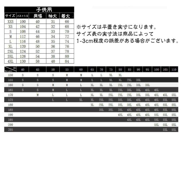 | サイズ | XS S M L XL 2XL 3XL 4XL 5XL 子供用100 子供用110 子供用120 子供用130 子供用140 子供用150 子供用160 |