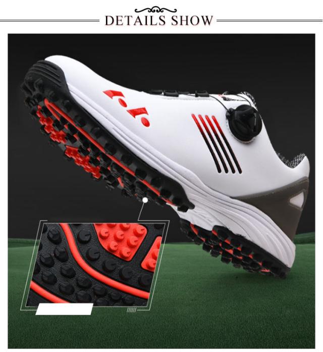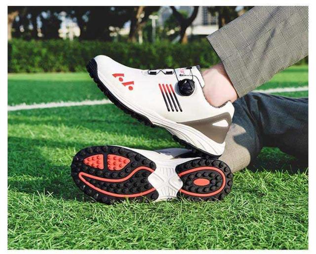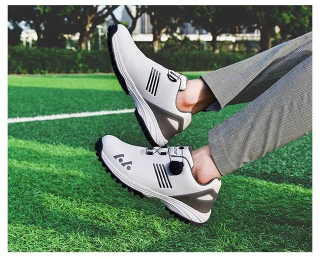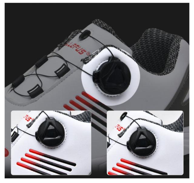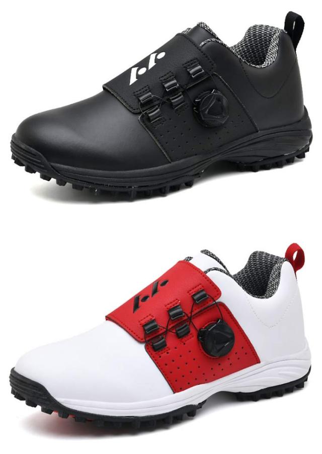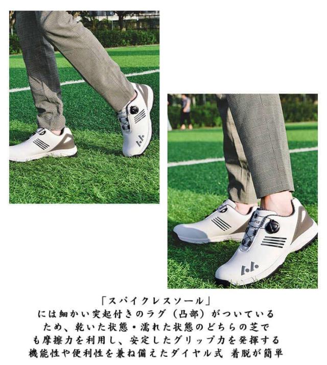 | ゴルフシューズ 軽量?防滑?着脱簡単 「スパイクレスソール」には細かい突起付きのラグ(凸部)がついているため、乾いた状態・濡れた状態のどちらの芝でも摩擦力を利用し、安定したグリップ力を発揮する 機能性や便利性を兼ね備えたダイヤル式 着脱が簡単 | |