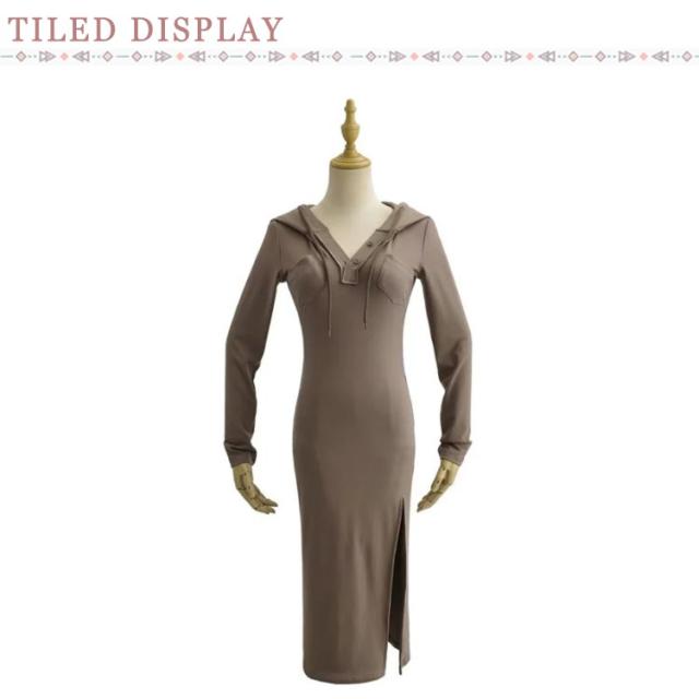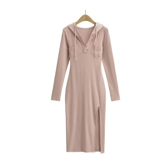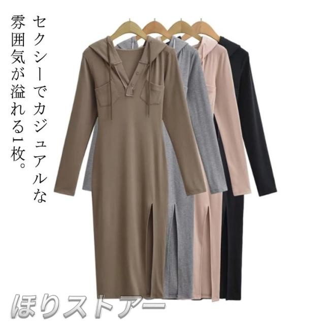 ワンピース スウェットワンピース 長袖 タイトワンピース 送料無料 パーカーワンピース フード付き セクシー スリット ロング丈 ミモレワンピース 20代 30代 40代