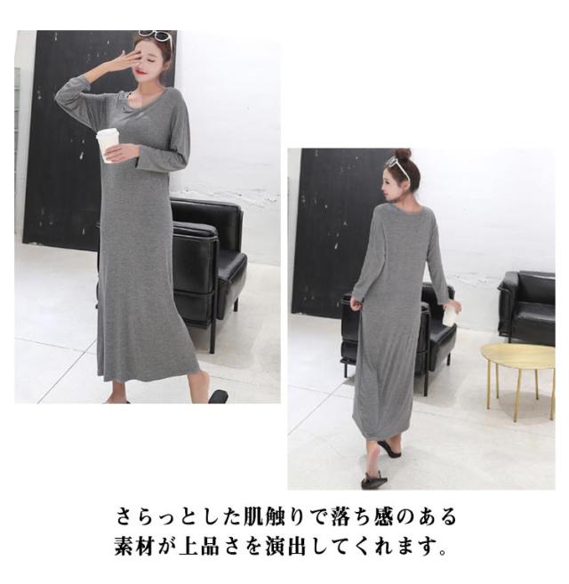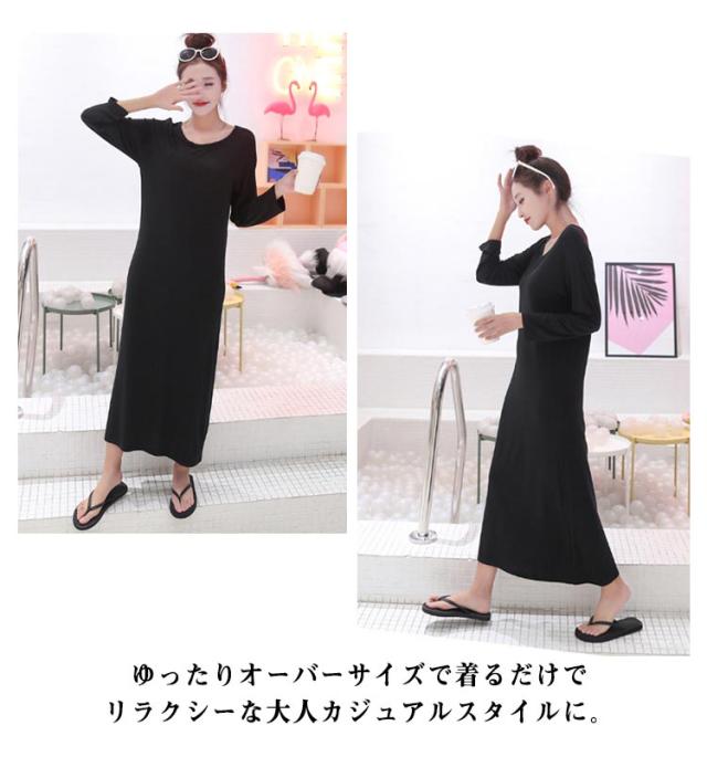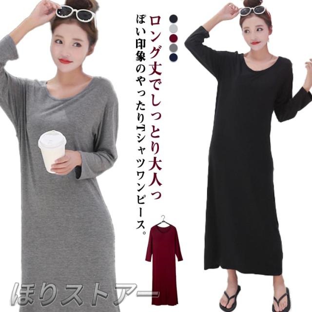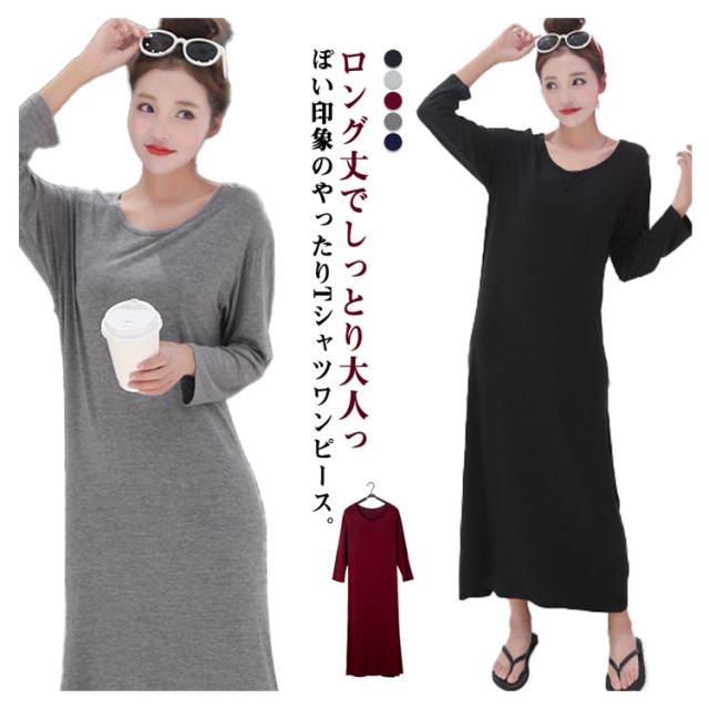 ロングTシャツ ワンピース Tシャツワンピース 長袖 カットソー ロング丈 体型カバー 大人 可愛い ルームウエア ゆったり 春秋 韓国風 ワンピース ゆったり 体型カバー 無地 マキシワンピース ロングTシャツワンピース プルオーバー