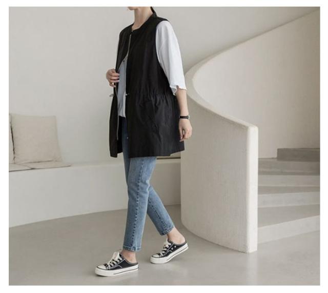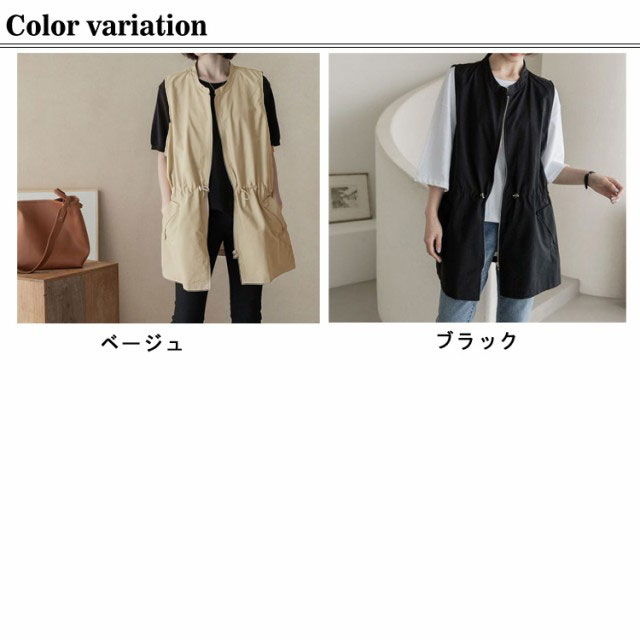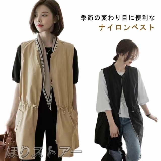 ベスト レディース ナイロンベスト ロング クルーネック ジップアップ 前開き 春秋 ミリタリーベスト 春 夏 ポケット付き ノースリーブ ジャケット サマージャケット カジュアル 韓国風 無地 大きいサイズ 30代 40代 送料無料