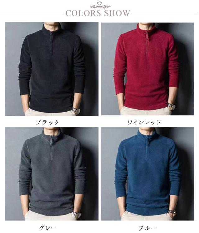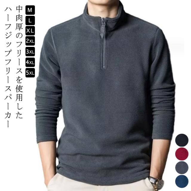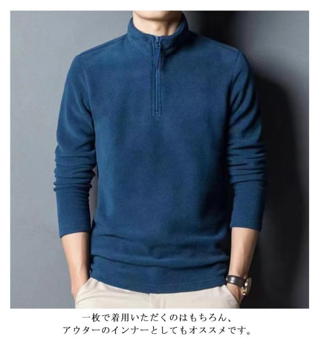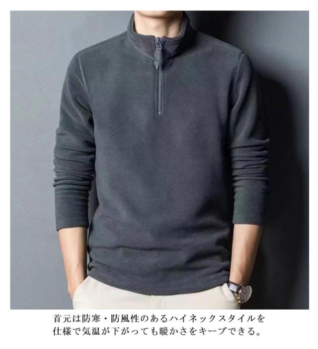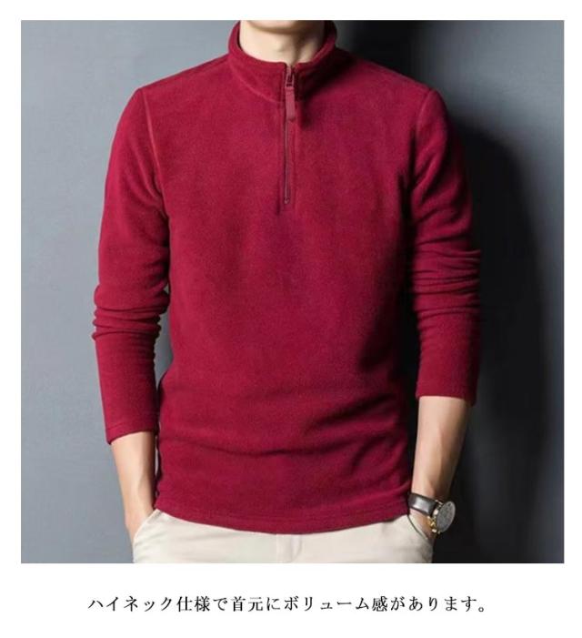 フリース パーカー ハーフジップ メンズ ボア 野球 ゴルフ プルオーバー ハイネック トレーナー スタンドカラー 立ち襟 トレーナー トップス 長袖 大きいサイズ 無地 シンプル 中肉厚 秋冬 防寒 保温 ゴルフ インナー スリム フィット 暖かい カジュアル