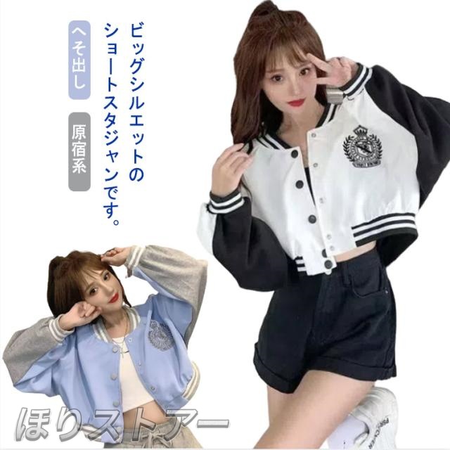 長袖 ショートアウター大きいサイズ 原宿系 ダンス ダンス トップス ショートジャケット 衣装 へそ出し へそ出し スタジャン ヒップホップ ジャズ k-pop 韓国 おしゃれ 衣装 発表会 カジュアル レディース