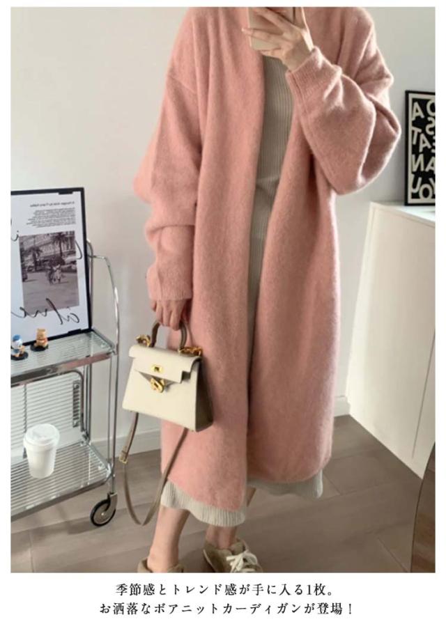 | *秋にはシャツやカットソーなどの薄めのインナーを。寒い時期にはタートルネックや厚めのトップスを合わせれば、選ぶインナーによって長いシーズン着用していただけます。 *デニムやワイドパンツを合わせれば大人カジュアルな印象に、プリーツスカートやタイトスカートを合わせれば大人かわいい印象に。様々なボトムスとの相性も抜群です。 *季節感とトレンド感が手に入る1枚。 お洒落なボアニットカーディガンが登場! コーデがグッと今っぽく変わるアイテムです。 | |