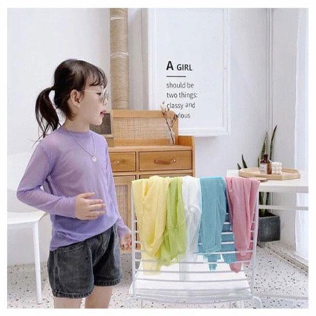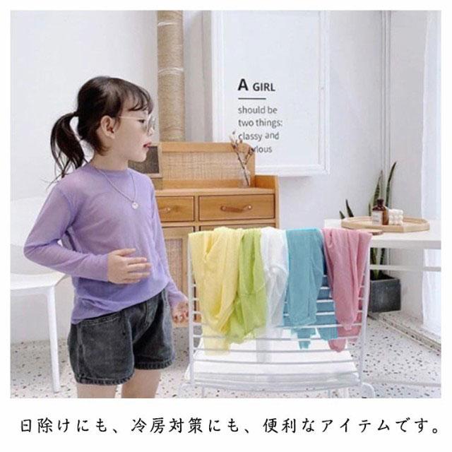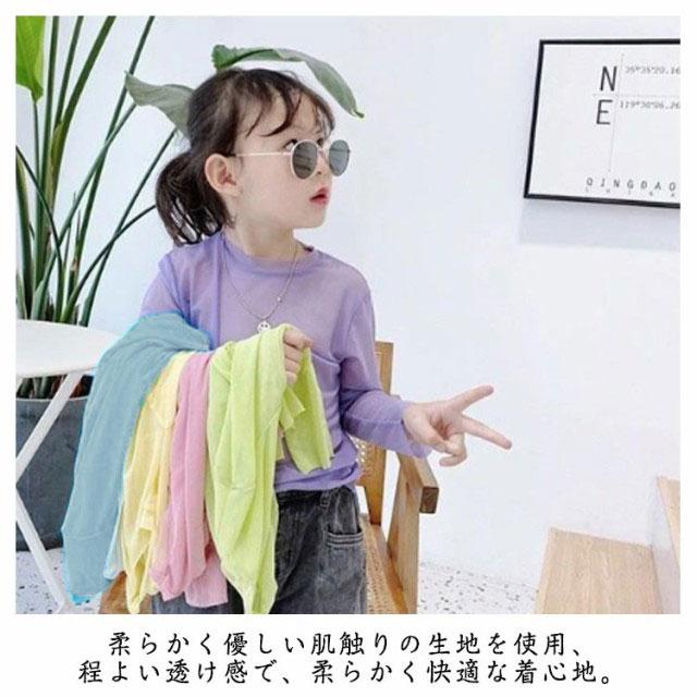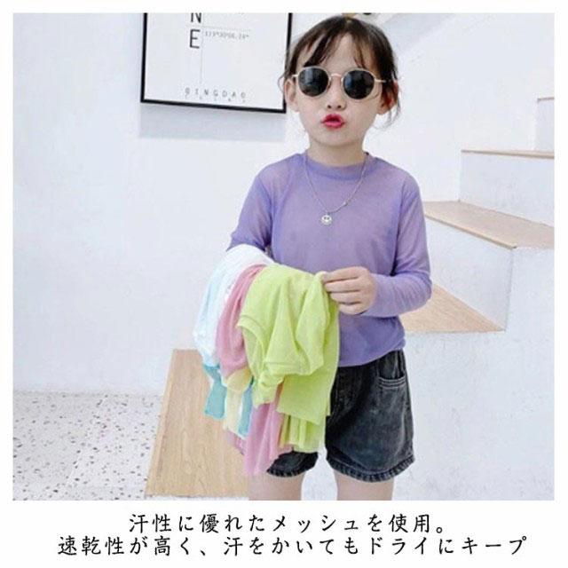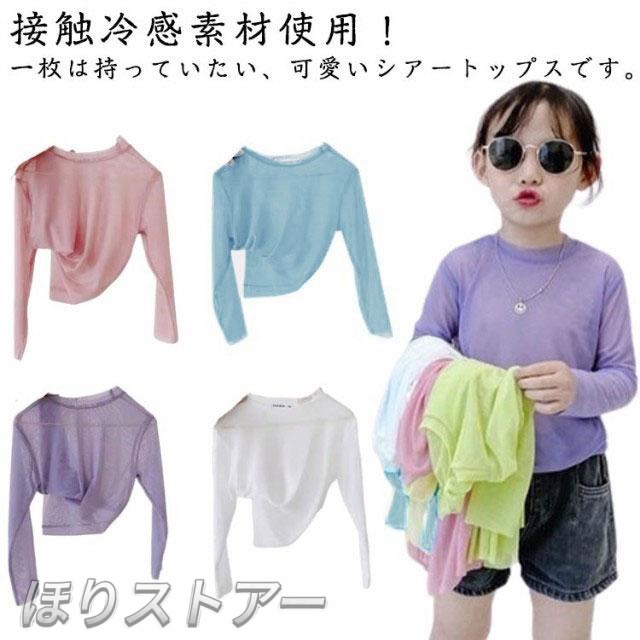 接触冷感 キッズ シアートップス ラッシュガード プルオーバー 長袖 Tシャツ UVカット 春 夏 サマー トップス 子供 ベビー 女の子 紫外線対策 日焼け対策 ステージ衣装 ダンス衣装 可愛い 韓国 おしゃれ 100 110 120 130 140 150cm