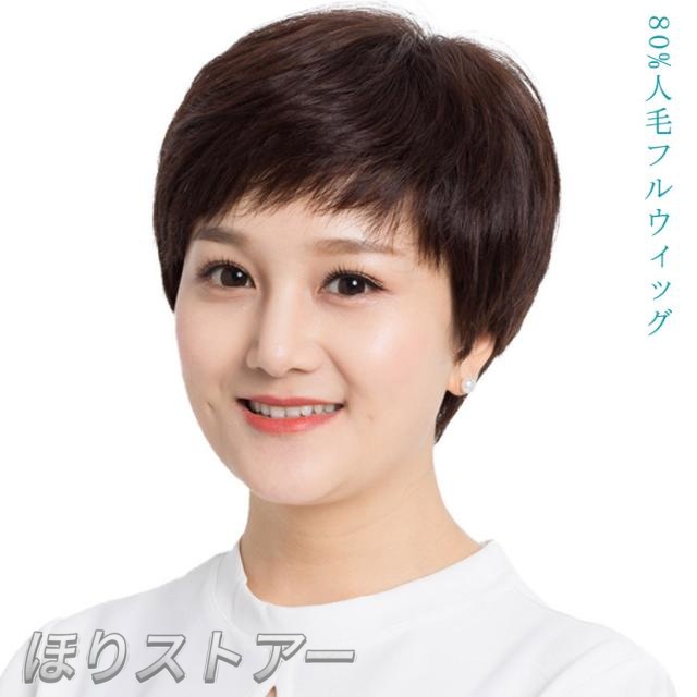 ショート ウィッグ 人毛 80% 総手植え ミセス 自然 ボブ フルウィッグ 人毛 ウィッグ 人毛 自然 メンズ 人毛ウィッグ レディース 抗がん剤治療 人毛100 ショート かつら