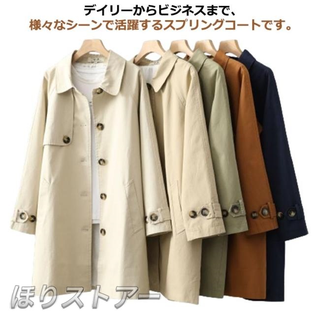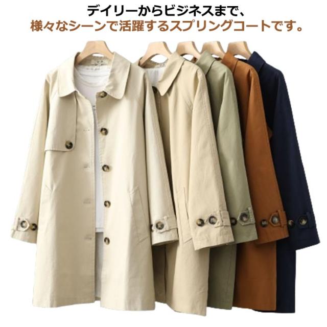 スプリングコート トレンチコート レディース シングル 通勤 春コート ステンカラーコート ビジネスコート アウター ビジネス フォーマル ライトアウター トレンチ コート 定番 無地 カジュアル オフィス 送料無料 ベージュ アイボリー グリーン ネイビー ブラウン
