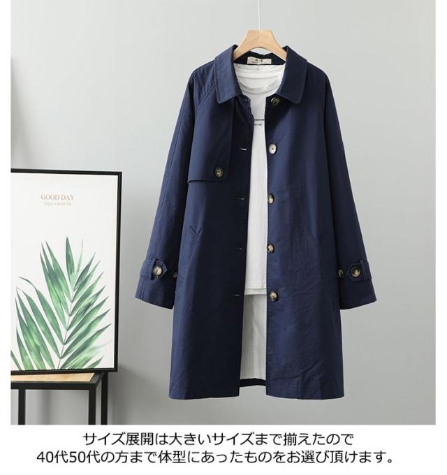 | デイリーからビジネスまで、様々なシーンで活躍するスプリングコートです。 レイヤード次第で今から春までロングシーズン愛用できる、春アウターの定番! 生地には少し光沢があり、落ち着いた大人っぽいカラーにマッチ! ダブルよりスッキリして見え、ストンとした長めのIラインシルエットが大人な雰囲気を盛り立てます。 あわせるアイテム次第で、カジュアルにもフォーマルにも着ていただけるアイテムです。 通勤にも使えるシンプルなデザイン。前を閉めてもすらっと脚を長く見せてくれます。 サイズ展開は大きいサイズまで揃えたので40代50代の方まで体型にあったものをお選び頂けます。 | |