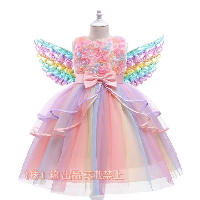 ドレス子供女の子洋装フォマールセレモニードレス子供ドレスプリンセスユニコーンドレス子供錦ドレスプリンセス虹色プリンセス風卒業式発表会入