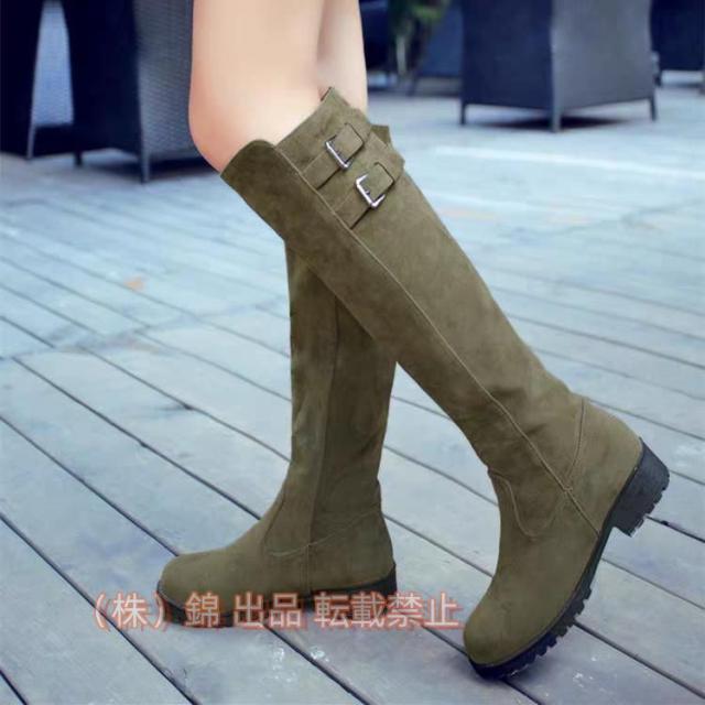 ブーツレディースロングロングブーツスウェードジョッキーブーツブラック黒靴ローヒール太ヒールラウンドトゥ錦柔らかい履きやすい防寒歩きやすい