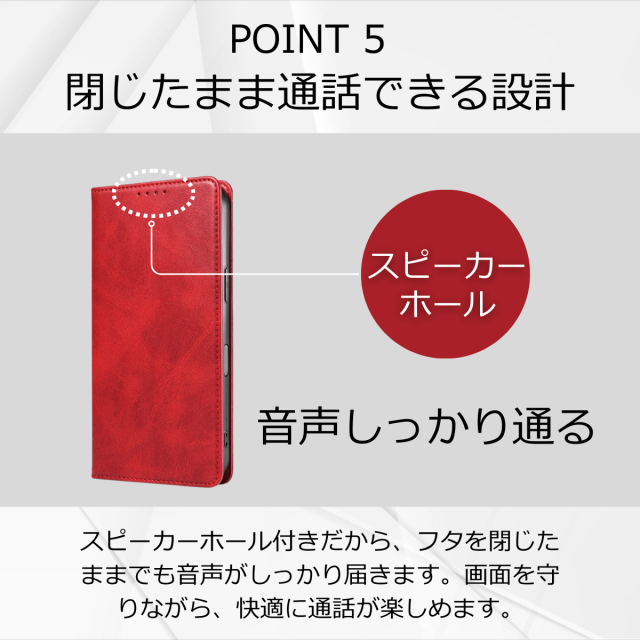 スピーカーホールのおかげでケースを開かずにそのまま通話が可能。手がふさがっているときにも役立ちます。