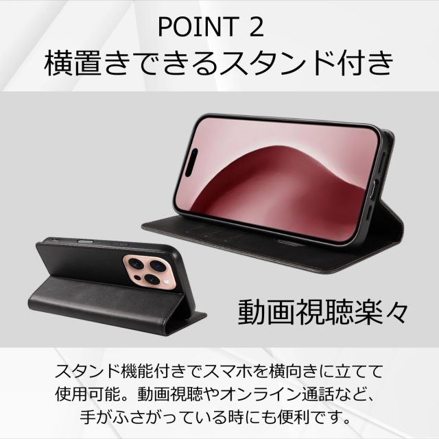 土日祝も発送★送料無料★ 手帳型スマホケース iPhone 16 Pro 対応 マグネット開閉&スタンド機能付き