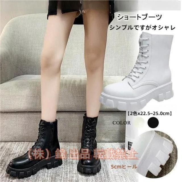 レースアップブーツ 厚底 ショートブーツ レディース コンヒール ショート丈 編み上げブーツ PU ブーティ 錦 カジュアル 歩きやすい 履きやすい おしゃれ 黒白