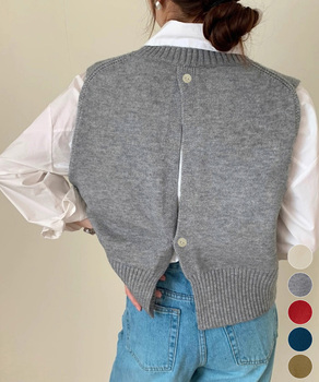 リブニットベスト 前後スリットニットジレ