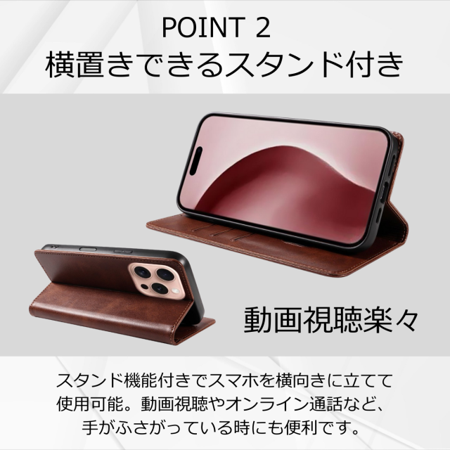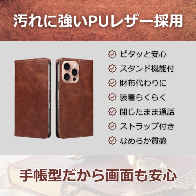 土日祝も発送★送料無料★ 手帳型スマホケース iPhone 16 Pro 対応 マグネット開閉&スタンド機能付き