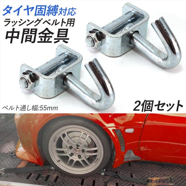 タイヤ固縛ラッシングベルト用 積載車用 中間金具 車両積載車 ターンピース 【2個セット】 ベルト通し幅 55mm 自動車 トラック用品 荷締 荷止用品 積載車 車 クルマ バイク 荷物固定 車両運搬 運搬