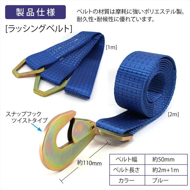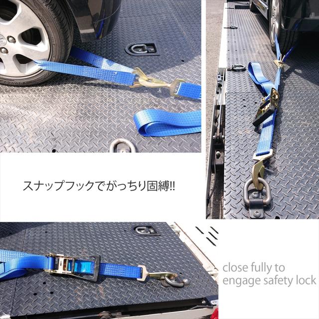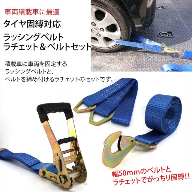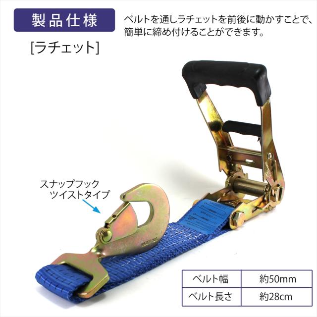 ラッシングベルト 車両積載車 ラチェット式 タイヤ固縛 対応 ベルト スナップフック ツイストタイプ ベルト幅 50mm 3m 積載車 車 バイク 荷締め 荷物固定 トラック タイヤ 固定 軽トラ ラッシング ラチェット ラチェットベルト