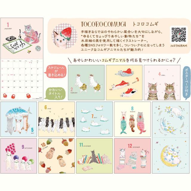 2026年度 猫の壁掛けカレンダー 【TOCOROCOMUGI】