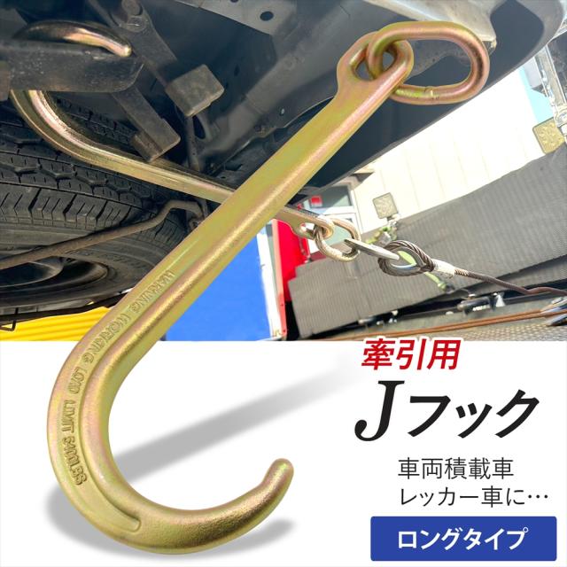牽引 J型フック 【ロングタイプ】 積載車 レッカー車 Jフック リング付き 36cm 耐荷重 2450kg 牽引チェーン 牽引フック 車両運搬 荷積み 車両積載車 運搬 レッカー用品 カー用品 ウインチ セルフローダー ラッシングベルト 荷締め