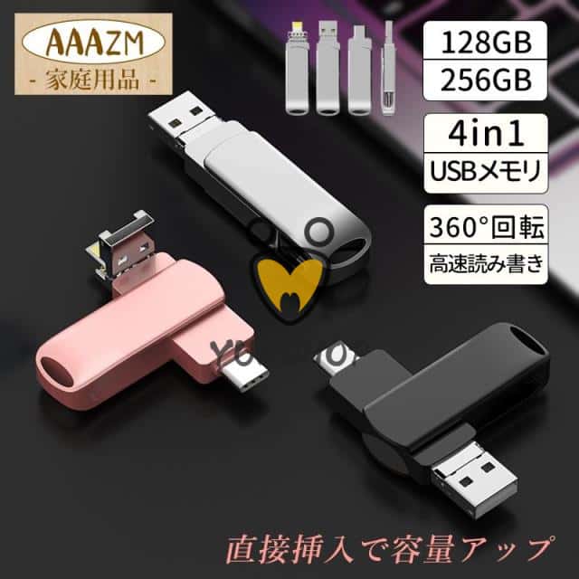#4in1 USBメモリ 128GB 大容量 256GB バックアップ