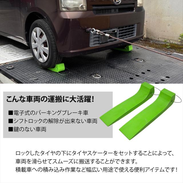 タイヤスケーター 2個セット タイヤスケート 積載車 レッカー車 セルフローダー ロードサービス 運搬 搬送 幅 80mm 積み込み作業 ドーリーサポート 自動車 車両積載車 積車 キャリアカー 脚折れ車 故障車 不動車 牽引 レッカー用品 トラック用品 車用品 グリーン オレンジ