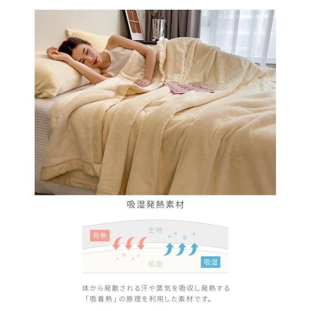 【様々な用途】軽くて暖かく、春秋には1枚で、冬には布団と一緒にお使いいただけます。吸湿発熱素材使用のアイテムは軽くて暖かく、冬におすすめです。また、敷き毛布、掛けもうふ(春・秋・冬)、布団の中掛け(冬場)、ソファー用毛布、お昼寝用毛布、車用毛布、ひざ掛け毛布などいろいろ場面で使えます。