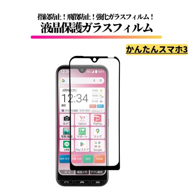 かんたんスマホ3 A205KC ガラスフィルム 強化ガラス 保護フィルム 光沢 全面保護 高透過 硬度9H 飛散防止 指紋防止 かんたんスマホ 3 かんたん スマホ3 Y!mobile ワイモバイル 京セラ